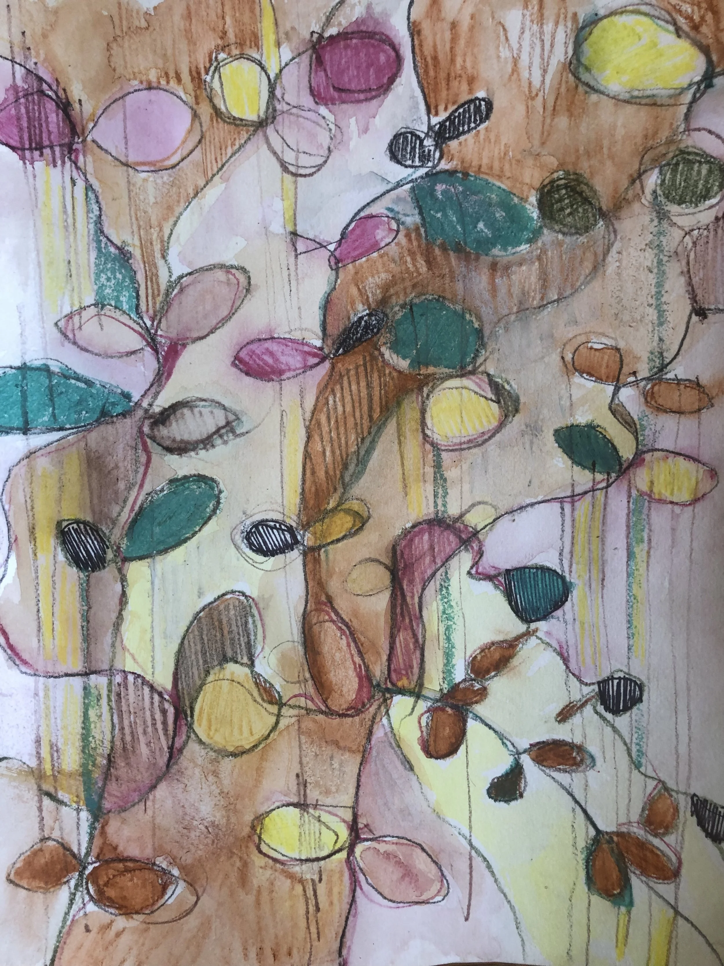 Dreaming Seeds, 14” x 11” Acrylic, oil stick and graphite on paper. Sold.
